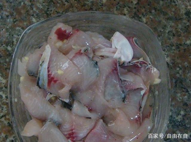 第二点就是需要腌制食材了,这一点非常的简单,可以有效的保持鱼肉的鲜嫩爽滑。但是在腌制的时候时间就是10分钟了。有了这一步,我们可以有效的去除肉质中的腥味,但是要在切食材的时候要注意了,尽量是切得均匀一些,并且保持在每片两毫米的厚度是好的。